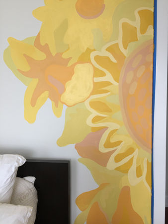This pair of floral patterned murals were done for two sisters in their new River North apartment. Their mom treated them each to a wall for their bedroom, done in their favorite color. I can't wait to see their rooms finished and furnished in blues and yellows, and will put pictures up here as soon as I have them